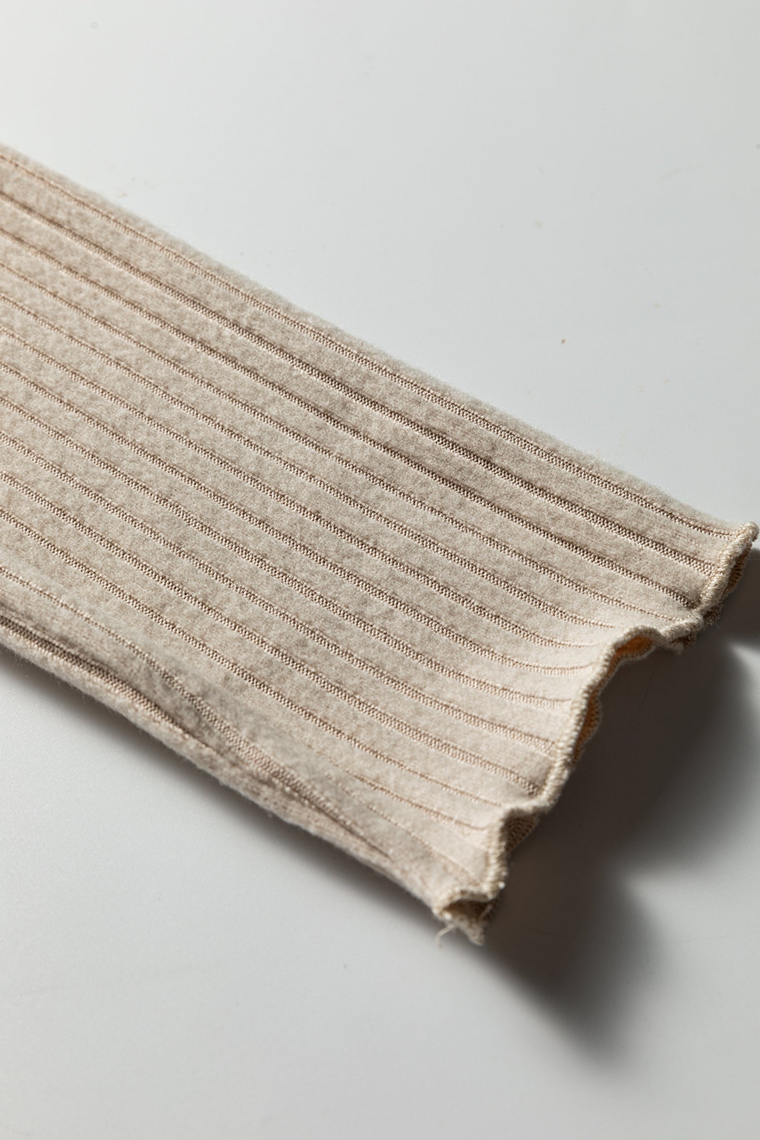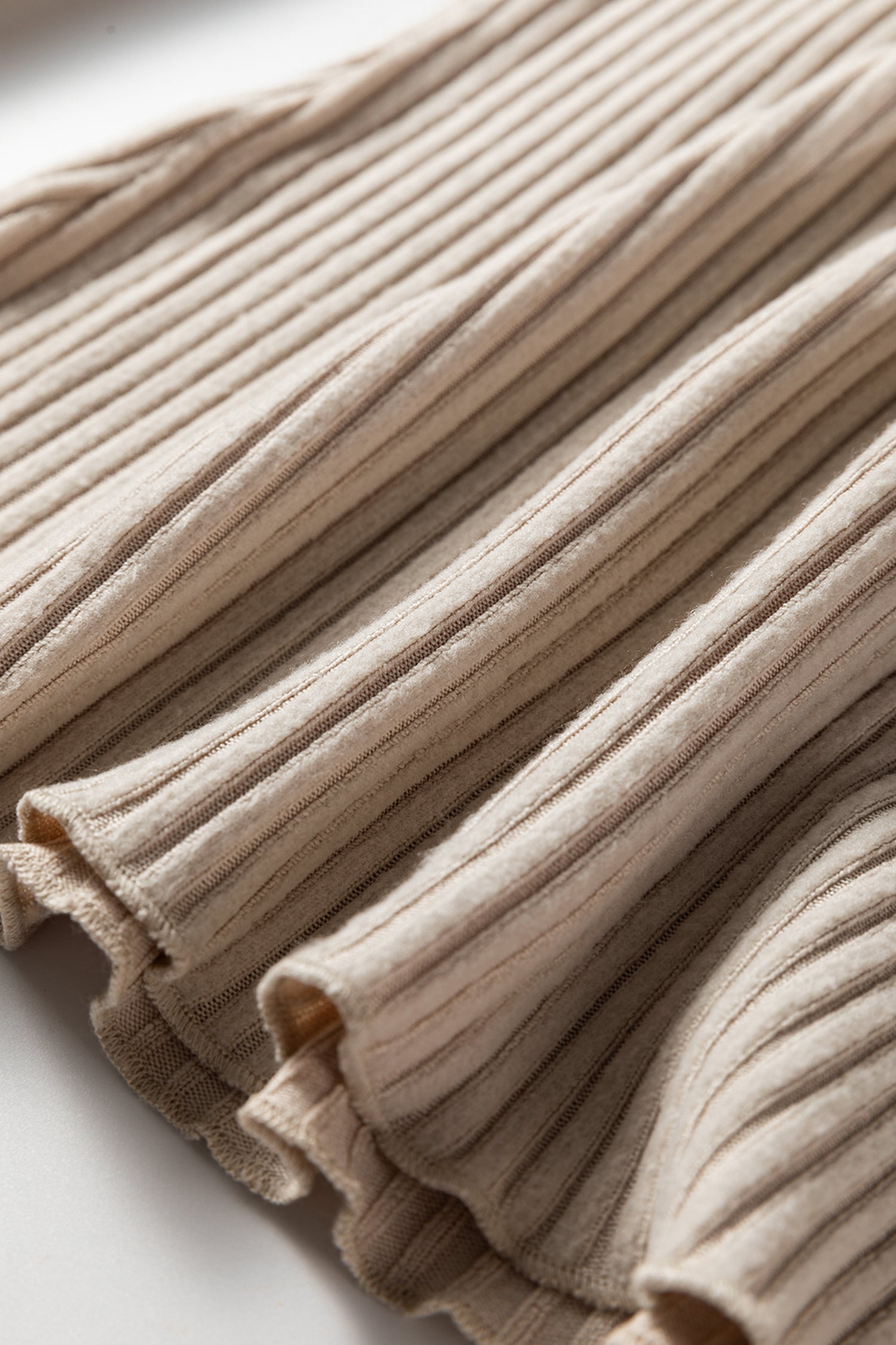 Beige Lace Neckline Button Decor Lettuce Edge Long Sleeve Ribbed Top