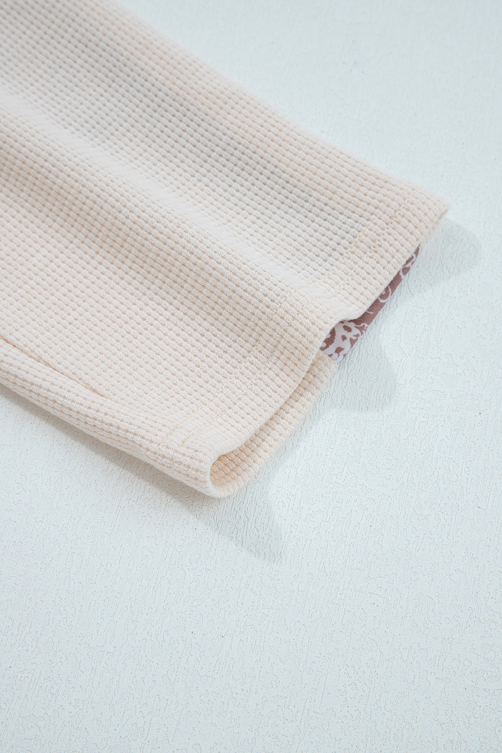 Beige Paisley Ethnic Print Contrast Patchwork Long Sleeve Loose Top