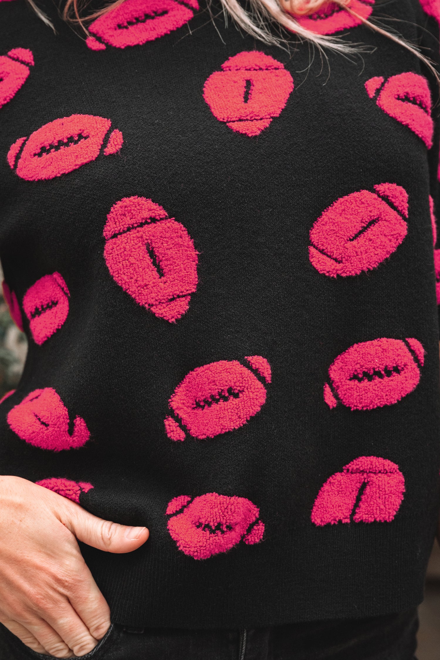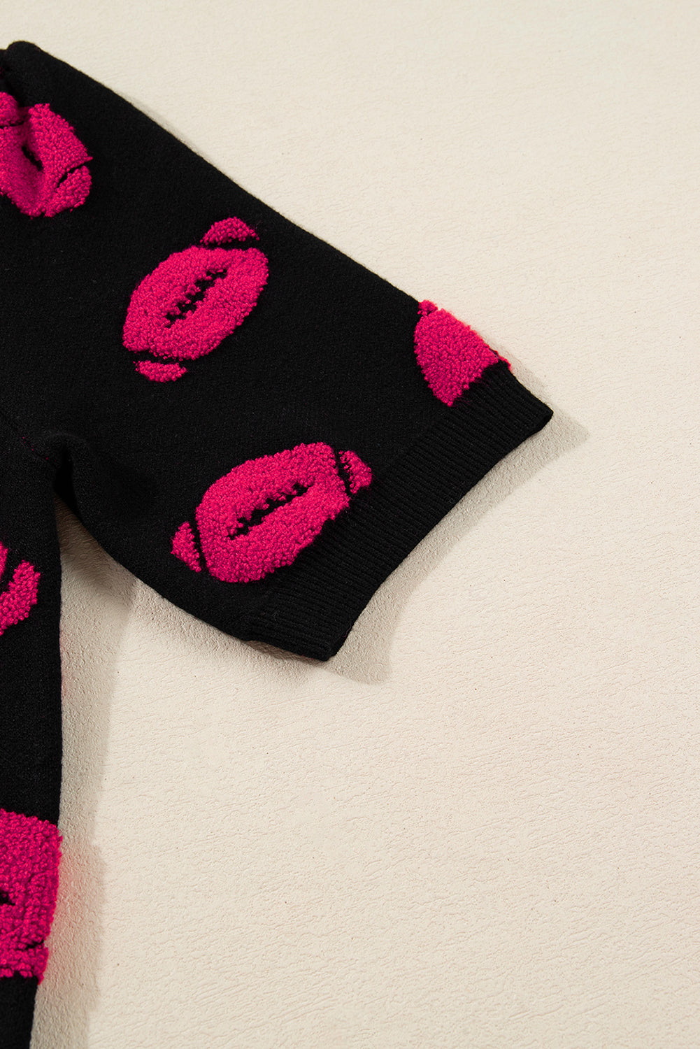 Black Rugby Print Casual Knit Short Sleeve Sweater