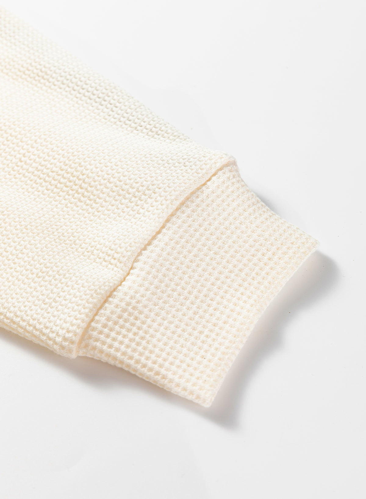 Black Waffle Contrast Knit Color Block Patchwork Button Front Oversize Hoodie