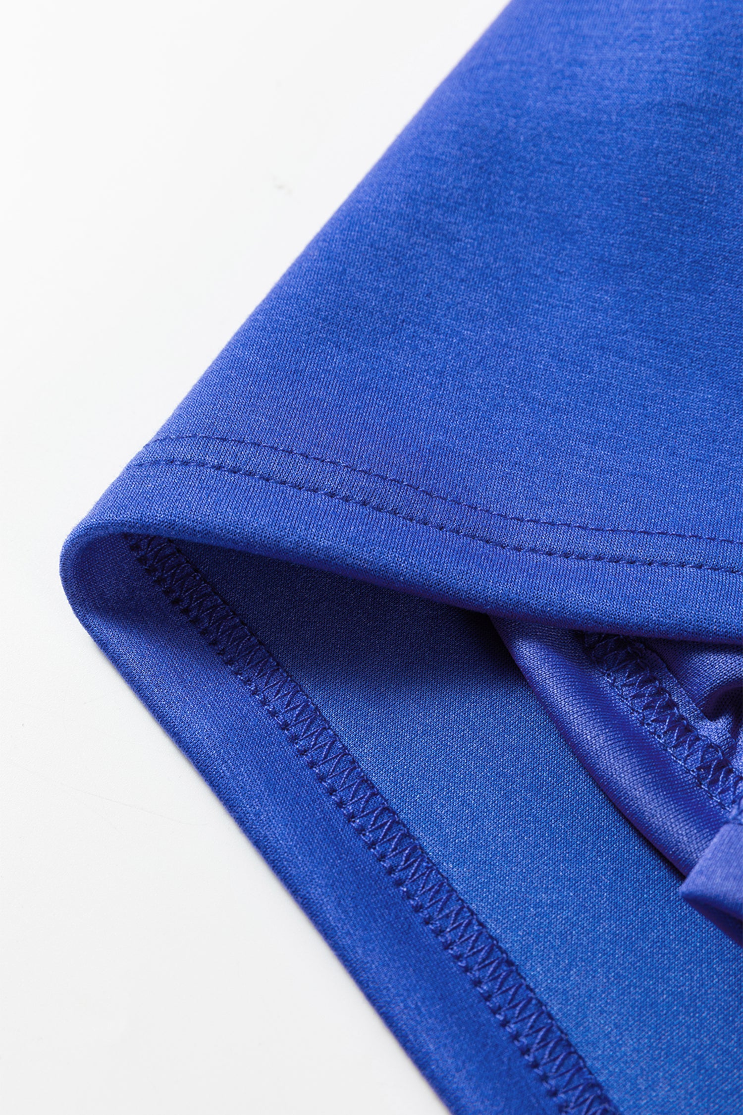 Dark Blue Half Zip Sporty Pullover Mini Skirt 2pcs Outfit