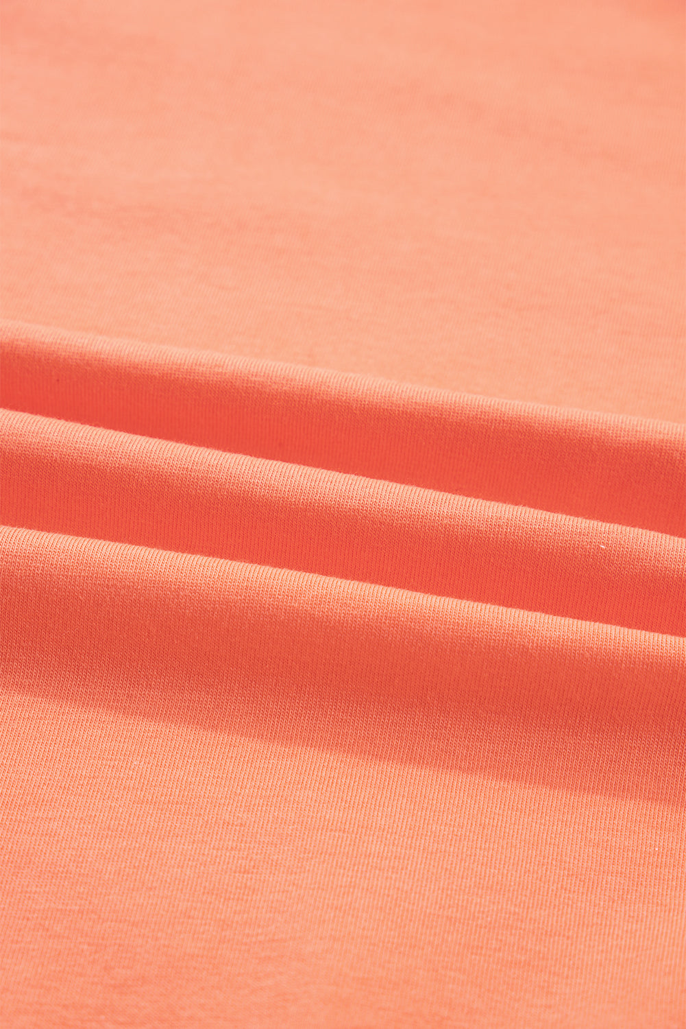 Grapefruit Orange Plaid Flower Waffle Patched Plus Size 3/4 Sleeve Top